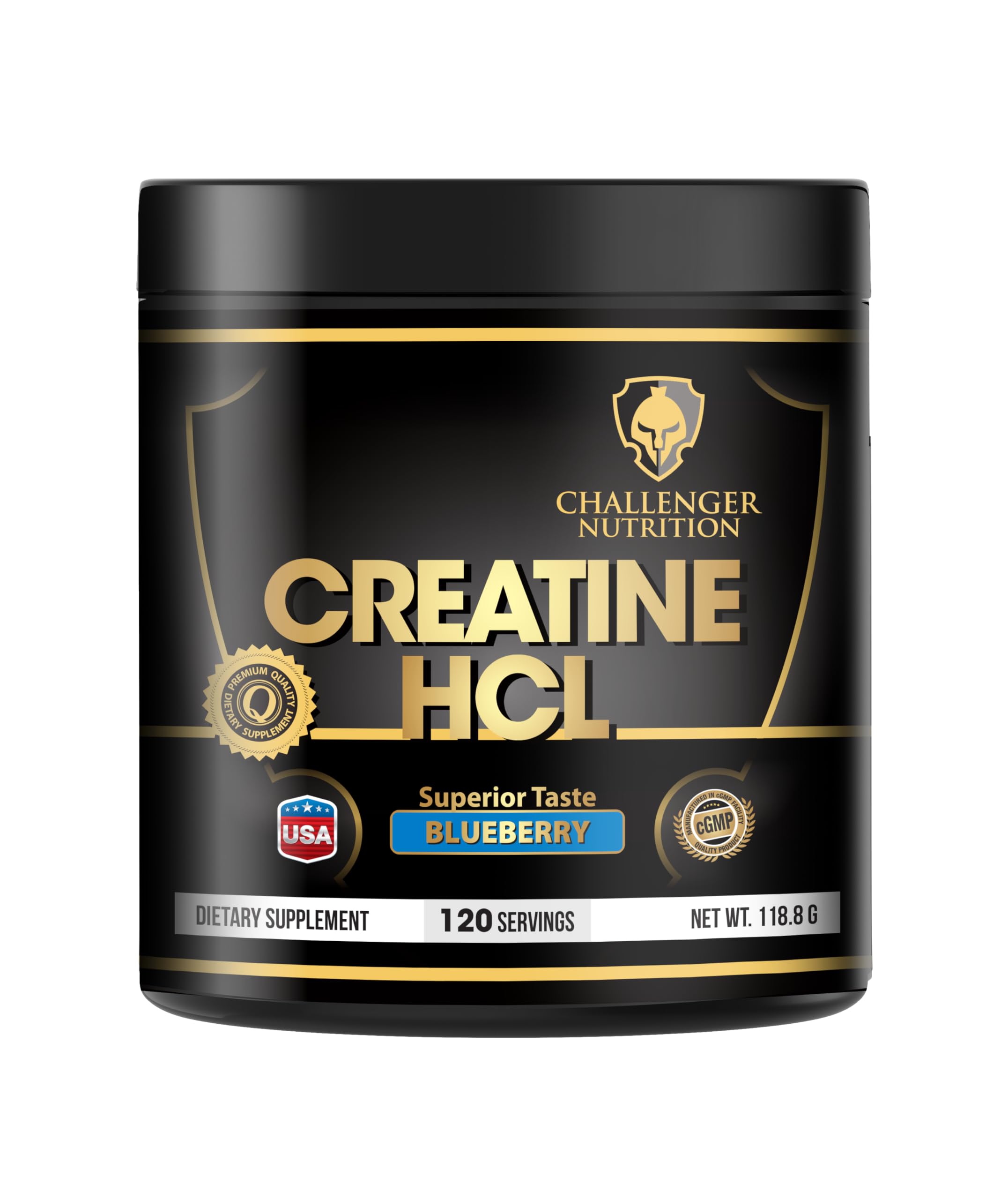 The Challenger Nutrition Creatine HCL is a high-performance supplement designed for athletes seeking strength, endurance, and faster recovery. With its fast-absorbing formula and blueberry flavor, it delivers 750 mg of Creatine Hydrochloride per serving without causing bloating or stomach discomfort.