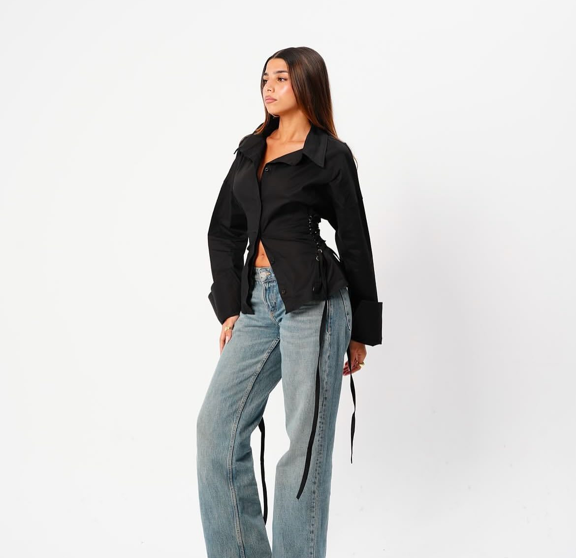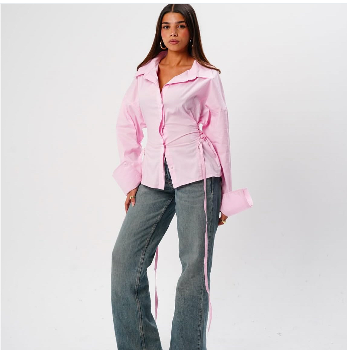 ooking for that perfect blend of comfort and style? Our poplin side-tie shirt is your new everyday favorite. Designed with soft, breathable fabric and chic side-tie details, it’s effortlessly flattering and easy to style — whether you’re heading out for coffee, shopping, or just enjoying the day. Pair it with jeans or wide-leg pants for a cool, laid-back vibe