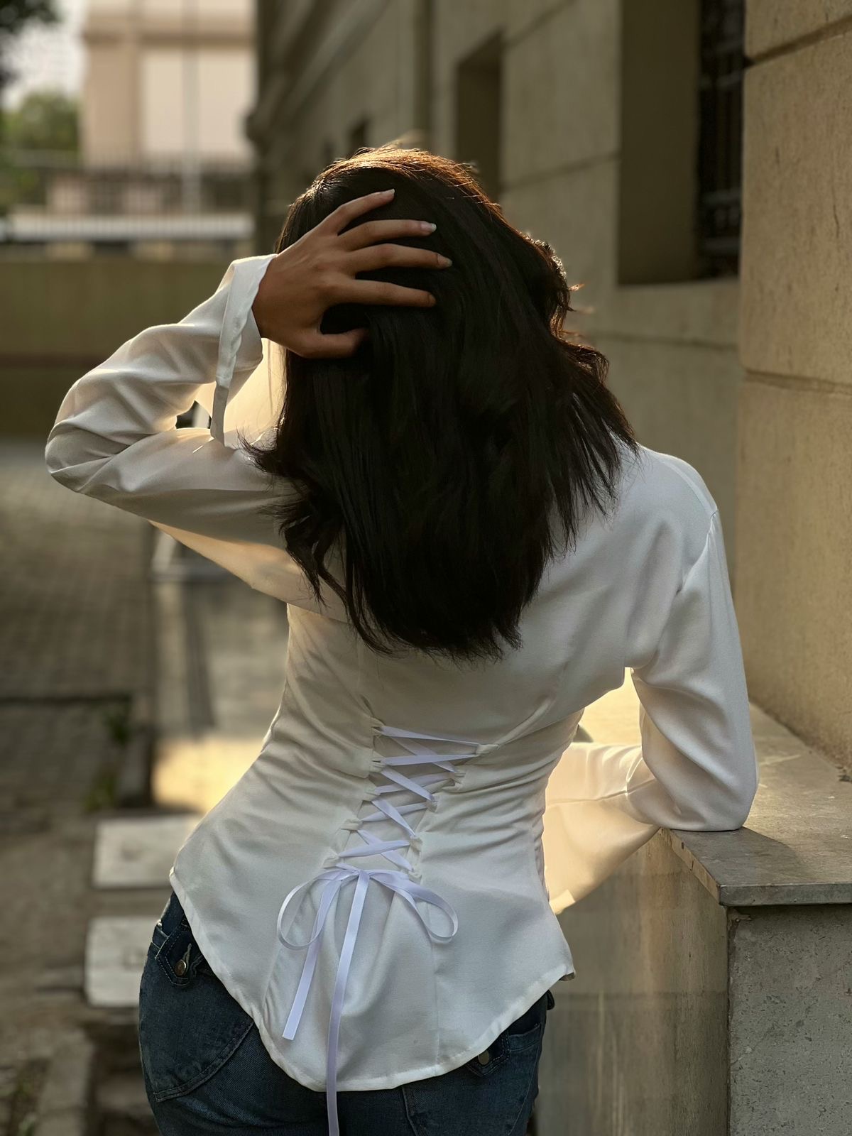 Elevate your style with this chic burgundy blouse. Featuring long sleeves and a classic button-down front, this shirt offers a timeless yet contemporary aesthetic. The subtle shaping ensures a flattering fit, while the unique back detail adds a touch of modern sophisticatione.