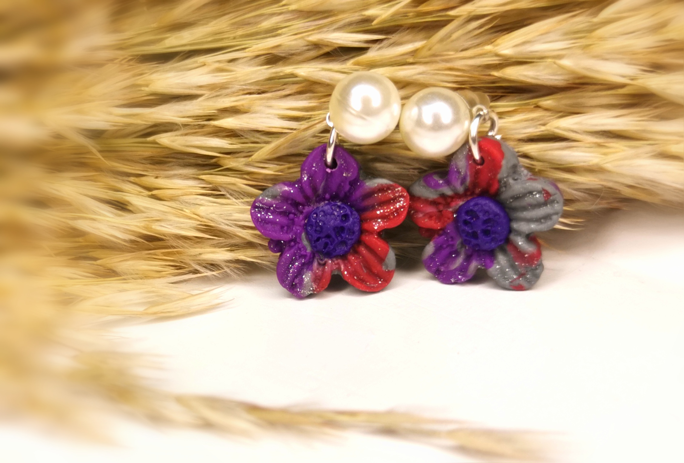 These earrings are lovingly handmade from high-quality polymer clay, shaped into an elegant leaf design that blends soft purple shades with golden highlights. Lightweight and comfortable to wear, they bring a unique touch of nature and artistry to your everyday look or special occasions.